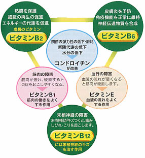 ”コンドロイチン”と”ビタミンB1・ビタミンE”が、三位一体となって老化や病気を防ぎます。